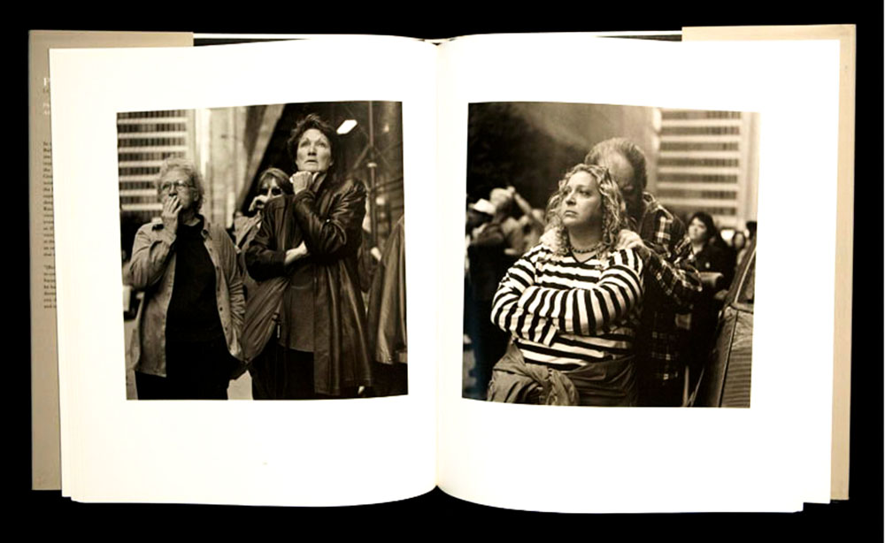 As we continue to page through the book, studying and accumulating these collective portraits in our memory, we start to assimilate that something very terrible has occurred. I understand that Bubriski does not need to show us what is being looked at, as the images of the destruction at Ground Zero have become seared in our minds.
