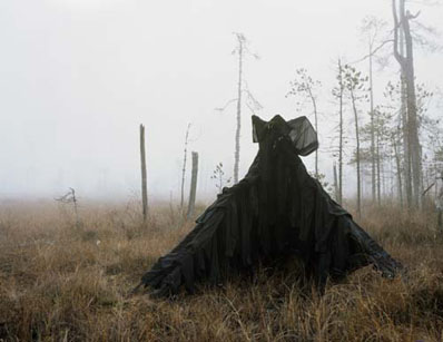 During her initial Ice project, occurring in the middle of a Finnish winter, she soaked and then formed the clothing as it quickly froze, animating the sculptured clothing. For this project she also utilized the flat overcast lighting to eliminate shadows, allowing the ghostly sculptures to float and hover over the landscape. During her Ice project, she encountered another unpredictable natural element, the wind, which led to yet another series of experimental clothing-site sculptures. This has in turn led to a continuing series of investigations into the interplay and conversations between nature and mankind.
