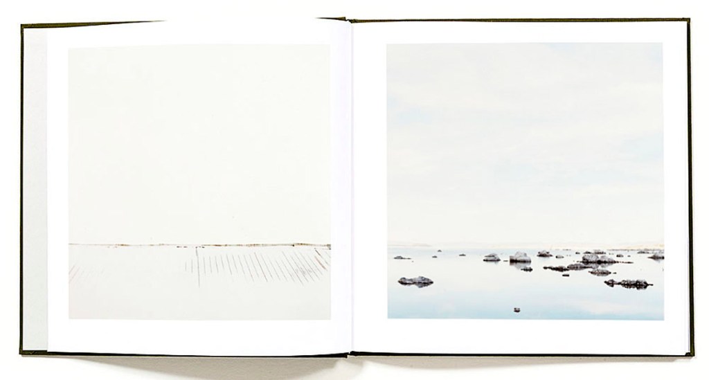 Marchand’s high key photographs lose their delicate tonality with the printing of this book. I was fortunate to review Marchand’s photographs in a PDF format, thus able to understand that the images in the book pale in comparison to her original intent. Her high key photographs of the various sky’s, which are so critical to appreciating this series, are washed out and vast expanses of white or light gray, without a hint of the color nuances that were present.