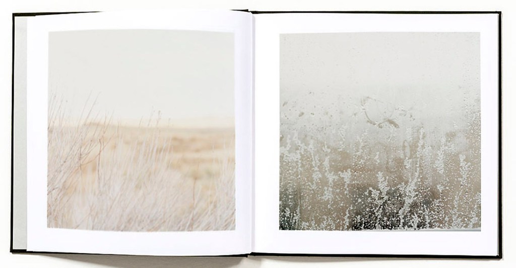 The book is arranged in a series of facing photographic pairs, one side Quebec, the other San Francisco, but neither are labeled as to which is where, adding to the mystery of this series. Nevertheless, you can deduct that the endless sea is probably the Pacific Ocean, while the snow clad and barren trees are those mostly like found during a Quebec winter. These photographs are more about the emotion response to these two regions than the specifics and details.