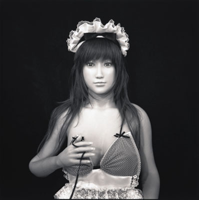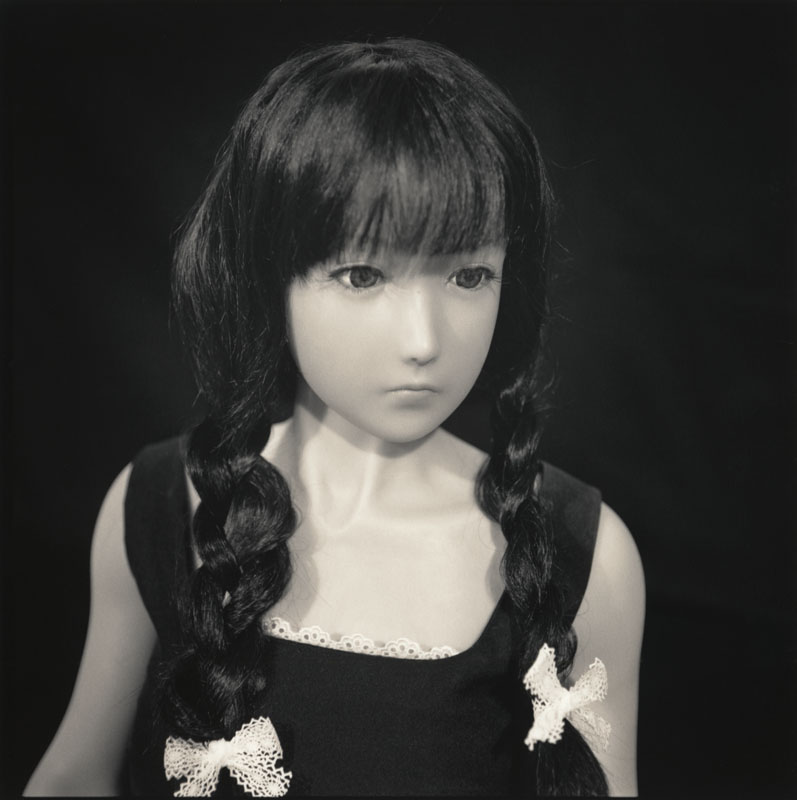 His usual black and white photographs further abstract the portraits that eliminate clues as to which is the live model versus which is the life-like Japanese sex-dolls. It appears that he has taken license and careful consideration to make them indistinguishable. This continues his discourse on fact, fiction and fantasy.