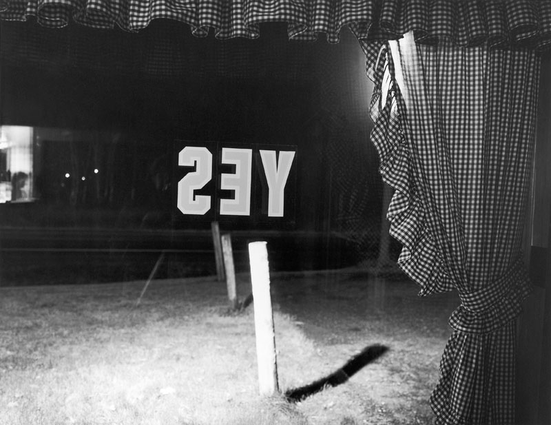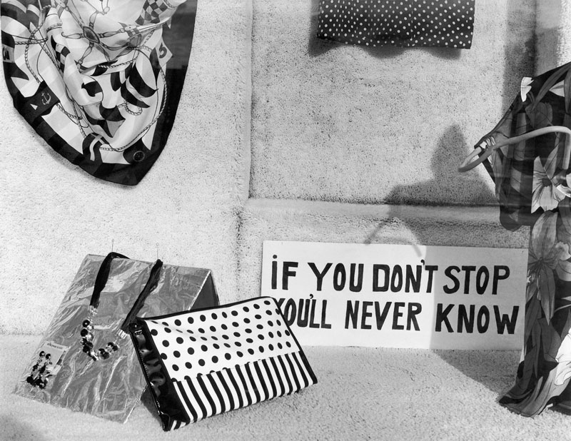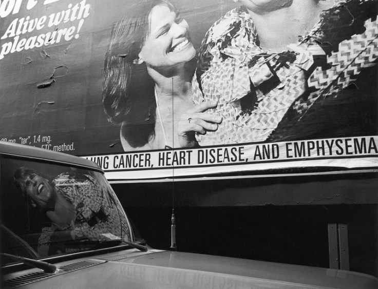 There is a Walker Evans element to a photograph of a billboard poster that has been composed to extract the paired text of Alive with Pleasure in juxtaposition with Cancer, Heart Disease & Emphysema. Subtlety located within the in the lower corner of the frame, a smiling face of a woman’s face is being reflected on the windshield of the car. So does this inclusive face provide approval or disapproval of the message, perhaps as though laughing at this new contextual combination? Upon closer examination, there is the realization that because of the orientation of the windshield, this smiling reflection appears horizontal, perhaps similar to a prone position of lying in a hospital bed. I will admit that this photograph is difficult for me, as I recall my dad lying with advance cancer in his hospital bed, joking about his “cancer sticks”. Regretfully this was not a humorous occasion.