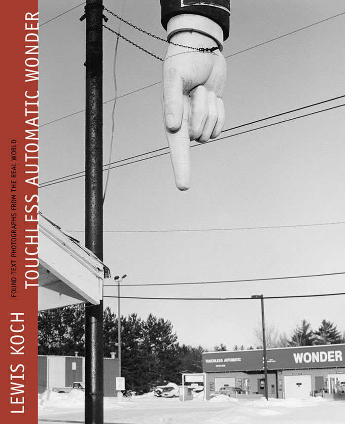 The subtitle to Lewis Koch’s Touchless Automatic Wonder is “Found text photographs from the real world”. There is no doubt that Koch is attuned to the abundant text that we swim through on a daily basis, to notice those juxtapositions that naturally occur, or with a little sleight of framing, creating poignant stories. Many times, like the photographs of David Carol, these are humorous, witty, and ironic.