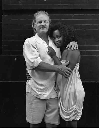 Each couple appears to strike a pose of their own choosing; to embrace, hold hands, lean into each other or perhaps stand just close enough, with arms folded or in their pants pocket, with the near proximity hinting at their intimacy. Most of his subjects gaze directly into the lens, with some choosing to look at their loved one. Likewise, there is both a guarded appearance, perhaps due to previous circumstances, as well as an openness and acceptance of each other and the viewer.