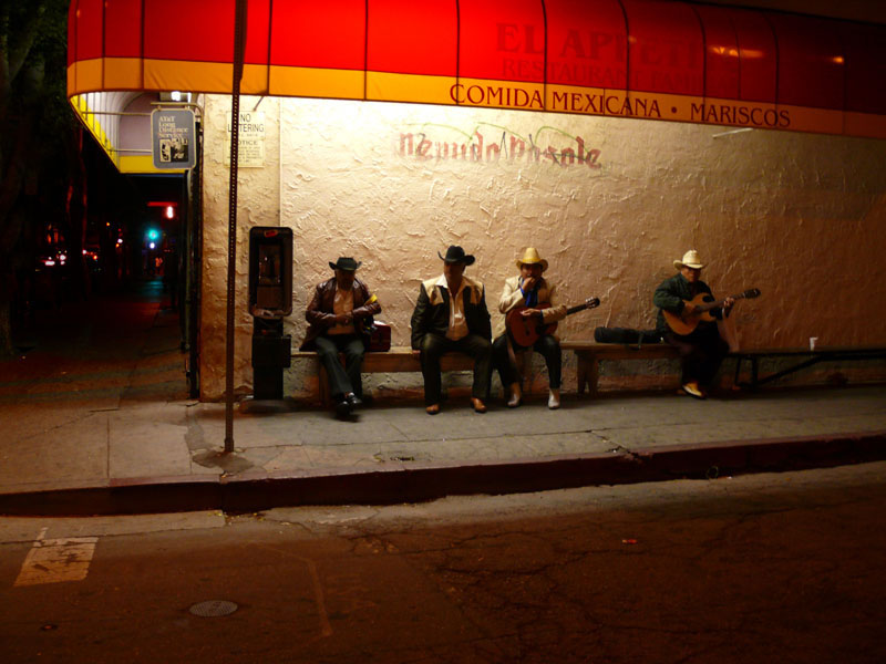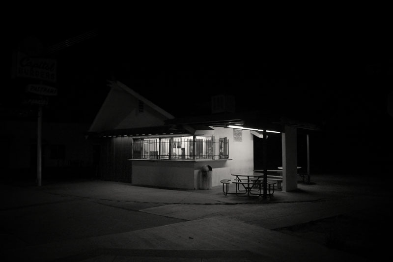 In his Los Angeles walk-abouts, he subjects range from the many bridges, taco stands, hotels, buildings and details of architectural infrastructure to those who inhabit these same locations. He fares much better with the urban landscape than he does with his urban portraits.
