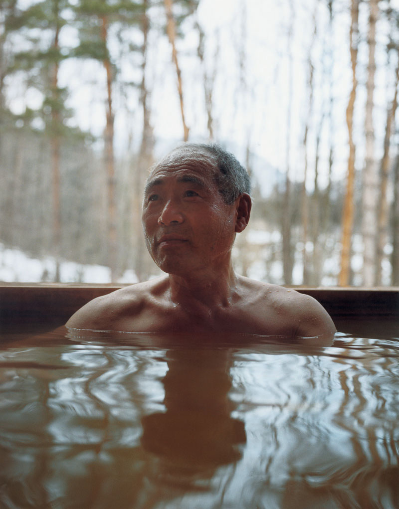 Phelps portrait of an older man who is sitting in water, appears beautiful and yet familiar with yet a hint of mystery. It immediately brings to mind the portraits of Mona Kuhn; the tonal range of the colors, the mysterious abstract reflective colors and shapes. The foreground and background are soft and out of focus, with a contemplative and passive person sandwiched between. The eyes of the older man are averted and the photograph appears serene and peaceful.