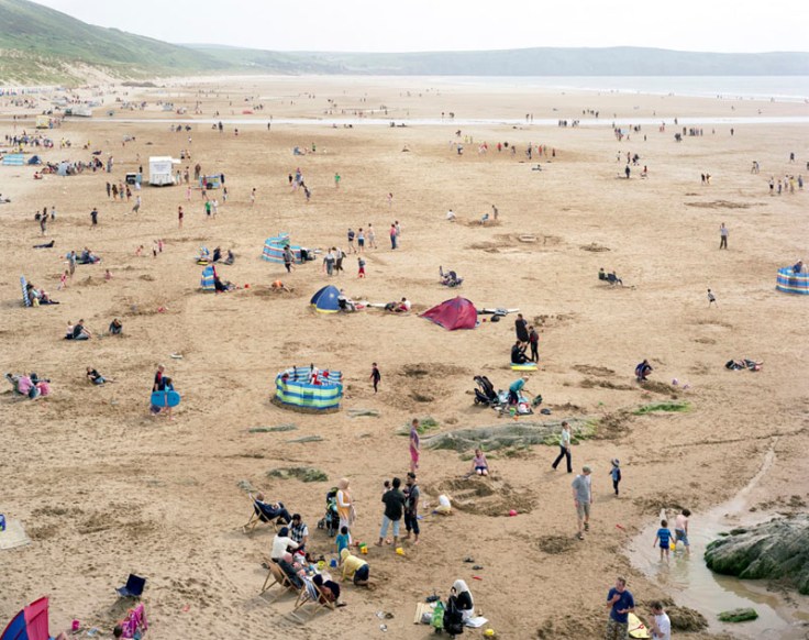 In Roberts Afterword commentary he states; “…I knew I’d begun to develop a formal composition to my framing which would define the direction of the work. I would move away from photographing the individual and engage instead with the idea of the collective, of groups of people populating the landscape. Photographing from elevated positions (often from the roof our motorhome, as it turned out) would enable me to get a greater sense of people’s interaction with the landscape and one another. I also decided that the figures would be relatively small in the frame, although not always so small that you couldn’t make out some facial expressions, what they were wearing and their activities….I liked the idea of what appeared to be predominantly pastoral landscapes becoming, on closer inspection, multilayer canvases, rich in detail and meaning.”
