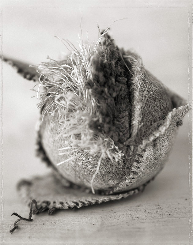 In one pair of photographs, the unraveling and destruction of a baseball results when the threads holding the ball’s exterior surface together are broken. The resulting mayhem can be read as a metaphor for what happens to relationships when there is a breakdown in personal connections. When there is a breakdown in the relationship, things do seem to unravel and at the end, it can be a complete destruction. This pair of photographs is in direct contrast to the other photographs, where Grogg attempts to establish a symbolic connection, now expanding the narrative to be inclusive of negative consequences to maintaining personal connections. Similar to Edward Weston’s green pepper, one photograph of the frayed and flayed open baseball has very overt sexual overtones, bordering on being graphic and sexually explicit. Intended or not.