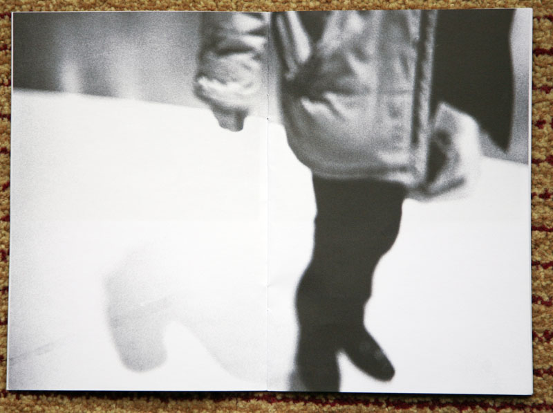 The design and layout of all of the photographs within this book are consistently the same, save one, the photograph of the truncated individual. All of the photographs are placed in the upper section of the page, one photograph per page, with amply white margins. The lone photograph of an individual is a two page spread, with full-page bleeds. Which reminds me of Ed Ruscha’s photobooks, that Ruscha would introduce into his photobooks, e.g. “Various Small Fires”, a photograph that would be not consistent or related with the remaining body of work, as Ruscha states “seemed to make the book more interesting and gave it some cohesion.” Interesting, yes, cohesion, not necessarily, but that is the type of non-rational contradictions that Ruscha enjoys introducing, which is a similar element that Aytac is introducing with this photograph.