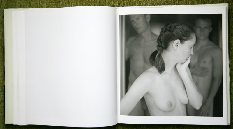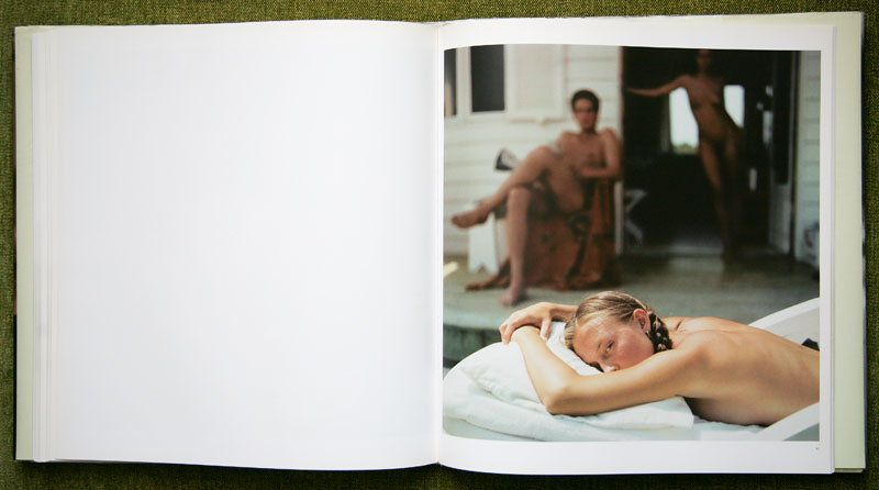 It appears that in 2002 her work makes a tangential shift to working with groups of nudes and introduces her use of color. Kuhn’s transition to a color palate appears to be complete by 2003. Although unstated in the text it has been subsequently revealed that the France portfolio of this book was made in Montalivet on the Western coast of France. This is also the same naturist location that Jock Sturges photographs and since Kuhn has photographed Sturges photographing on the beach we can assume that they know each other and may they have been mutual influences on each other’s body of work.