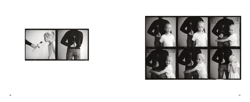 The photobook leads into the twenty one valentines and then follows with the background story for each photograph, with the contact sheet for the shoot and the cropping of each photograph. It is enlightening to see the raw shoot the development of the final photograph, but in the case of this photobook, more space is spent on the proofs and the background story than on the project itself.