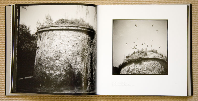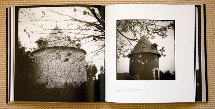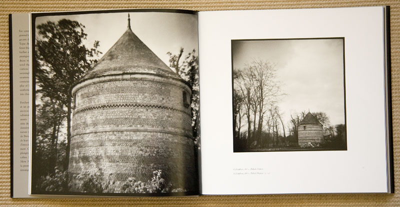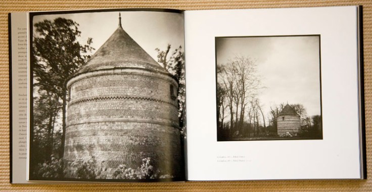 Topaz’s black and white photographs are composed with a square format that is static and lends to a sense of formality, perhaps in keeping with their aristocratic past. The narrow focus that abstracts the foreground and blurs the background has a shared impressionistic quality with the photographic work of Keith Carter, Maruro Florese, and Susan Burnstein. Likewise, photographing French structural relics that are quickly fading from the present in a documentary style is reminiscent of Eugene Atget’s turn of the century Parisian photographic work. Only on a few occasions do Topaz’s photographs tip the scale towards sentimentality, such as the cliché of a colombier framed with blossoms from the branches of a tree in Spring bloom. On the other hand, she creates moody, introspective and poetic narratives, with slightly dark undertones that are both mysterious and delightful.