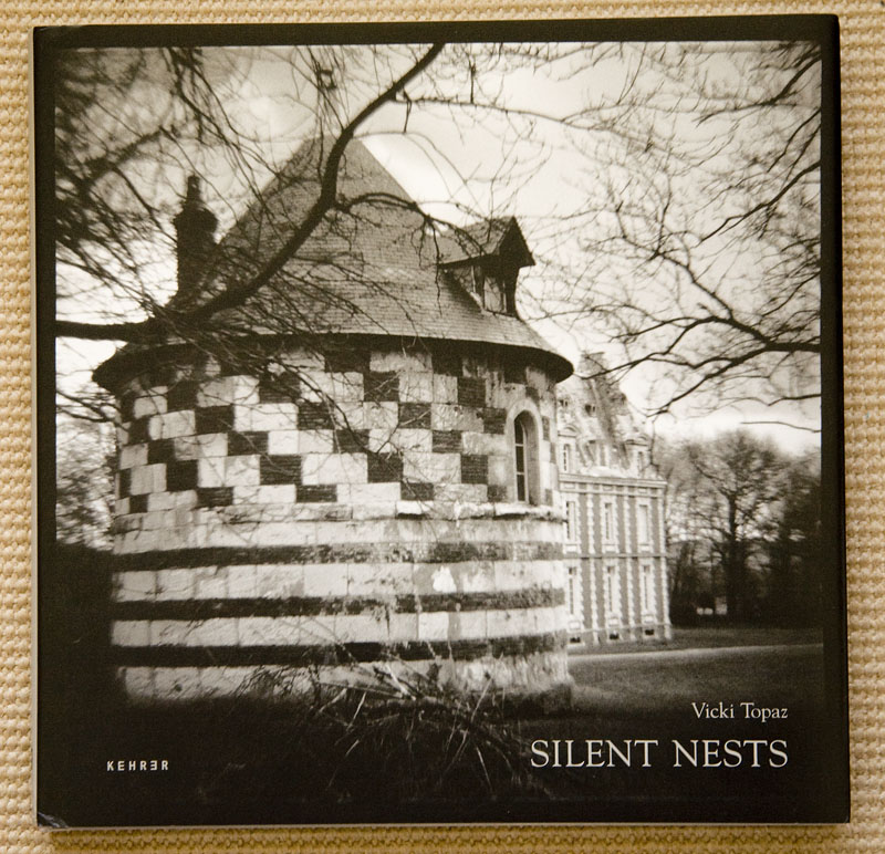 In his foreword to William Wylie’s photobook Route 36, the poet and essayist Merrill Gilfillan states, “It seems continually necessary to reassert that landscape study and its reflective arts are anything but passive disciplines, that civilization in a sustaining, daily sense emerges most surely from good relations with one’s surroundings (the perfect word) and the inner landscape of possibility held in the head and heart.” This is aptly applicable to the photographs of Vicki Topaz of her rural French landscape photographs that encompass her photobook Silent Nests.