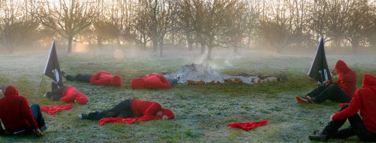 From the publisher: Anthony Goicolea’s third book is an amalgam of photographs and drawings. Though the artist no longer uses himself as a model, he continues to use the motifs of his earlier work. All male, and under thirty, Goicolea’s subjects seem to have left their public schoolboy roots behind, and matriculated in an environment which is otherworldly, replete with codes and rituals unfamiliar to the viewer. Often appearing in matching “uniforms”–everything from red hooded sweatshirts to white underwear–Goicolea’s tribe of boys kiss under moonlight, build forts in strange, idyllic environs, “Christen” each other in shallow pools, and engage in a mischief whose purpose is never quite clear.
