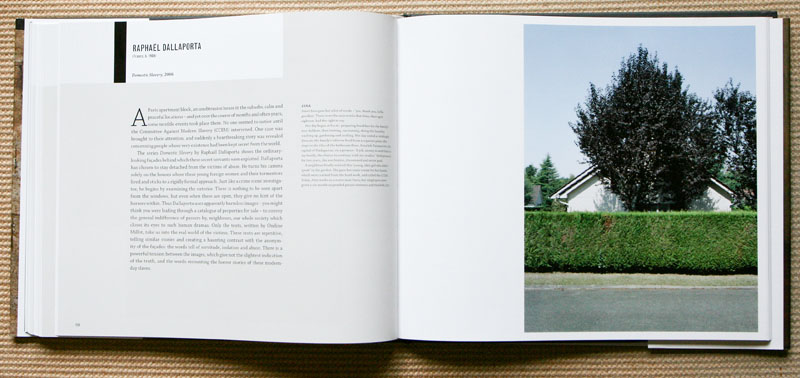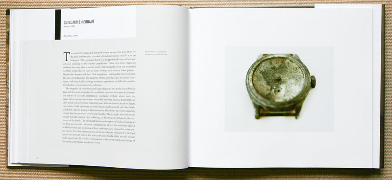 The book layout for each photographer’s project has an introductory statement prepared by Herschdorfer, which is facing one the photographs, then usually followed by two, and on occasion four, pages of supporting photographs from their project.