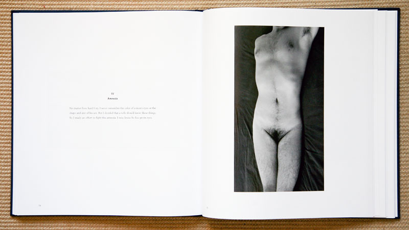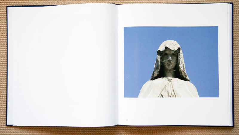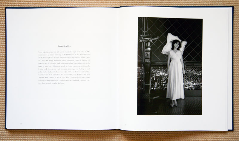 The book object, which is hardcover linen wrap, with an overlaid photographic image, is wonderfully printed and bound in Germany. The images and text are floating within traditional and ample white margins. The varnished interior photographic plates are a combination of color and black & white images. The vast majority of the photographs are paired with Calle’s accompanying text.