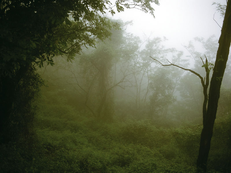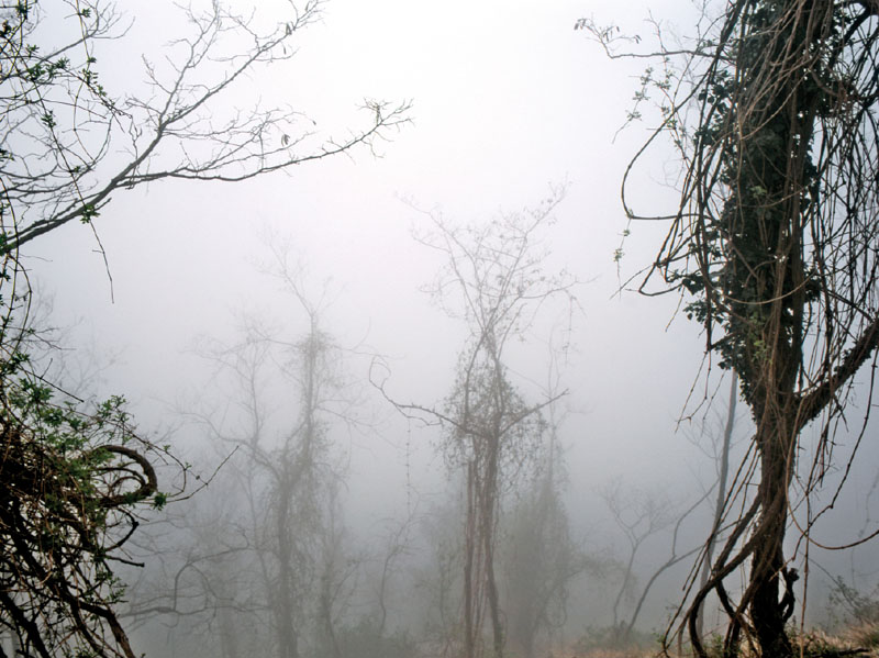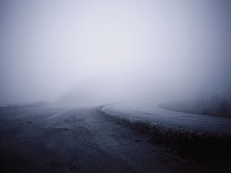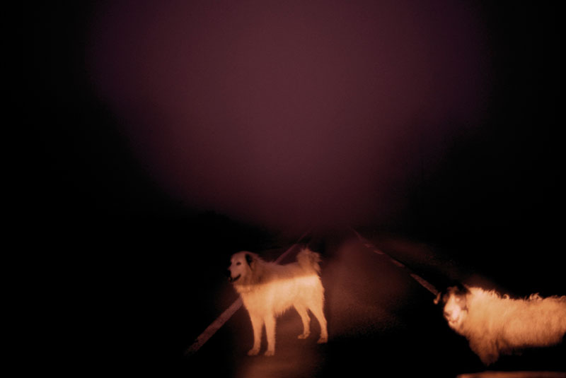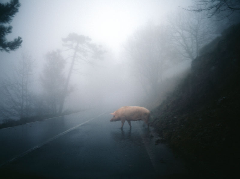 The subject of Schena’s lens is the atmospheric conditions found when the dark wind blows through this region, when low clouds obscures much of the landscape in a dense shroud of fog. To increase the ambiguity and increase the moodiness of this place, Schena frequently returns at dusk that in turn, recedes into a pitch black night. He follows this short road on a metaphysical journey, in which the landscape oscillates between the moody and the lyrical with brief glimpses of mysterious creatures that appear to dart in and out.