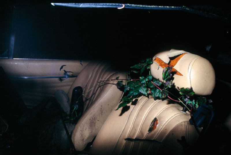 The photograph of a car wreck is a not so subtle allegory for a damaged and wrecked relationship, an experience that became a personal tragedy or has gone very wrong and awry. The abandoned carnage of this wreck is now beside the road, overgrown, the metal rusting and deteriorating with time. The road (way) as representing the future is not certain, which is lost in the shadows (troubles) & midst (angst).