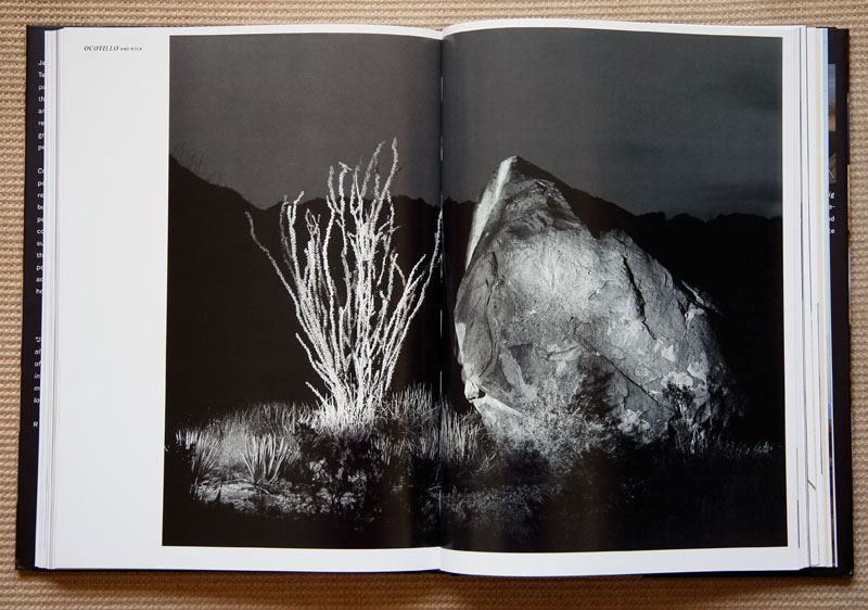 This dense book is a wonderfully large hardcover with dust jacket, with both the black and white as well as the color images very nicely printed. It seems to me that this book’s vertical format was an odd selection for a photographer who worked either in a square format or a very wide panoramic. One of the interior panorama plates is a huge double gate fold, but the wide photographs were either full bleed across the two page spread or a strip of wide ribbon across the two-page spread. Personally, I believe that a horizontal book format might have provided more justice for his body of work.