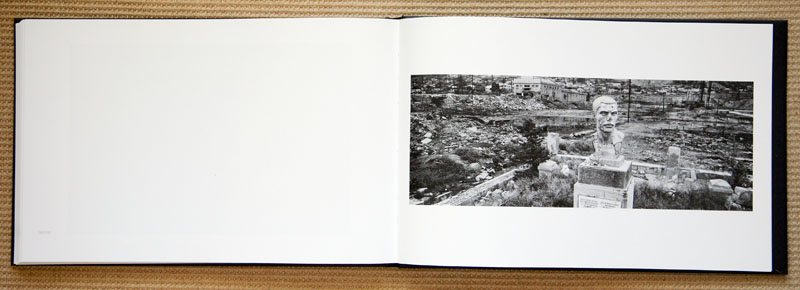 This very wide hardcover book complements the many panoramic photographs that Haley has incorporated into this project. The photographs are presented as singular images per spread, with ample classic white margins framing each photograph images that make this a joy to read. The book is beautifully printed and bound in Italy revealing the many nuances’ of Haley’s moody black and white photographs. A Foreword is provided by Dina and Clint Eastwood, an extended essay is provided by Andrei Codrescu and Afterword by Taj Forer.