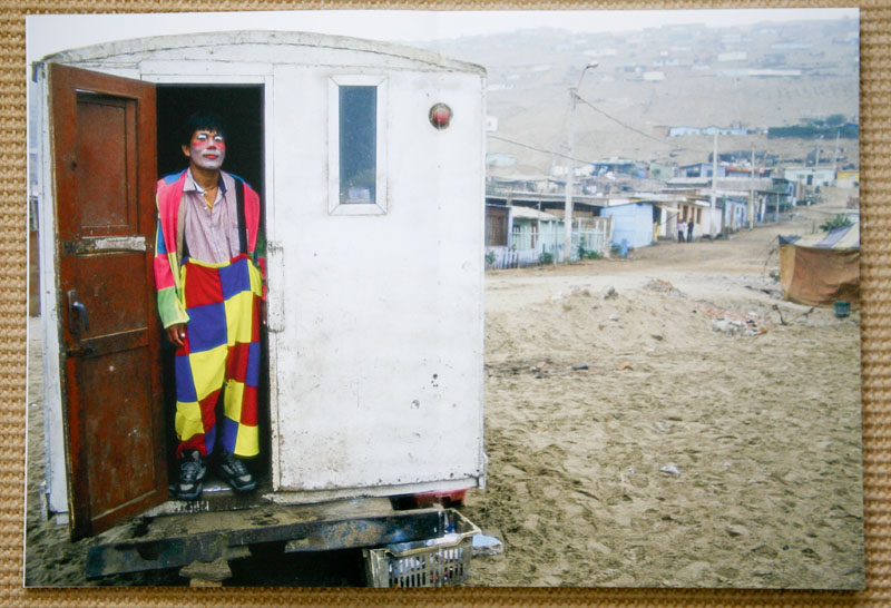 How can a man with such dirty hands and soiled face yet still keep his white shirt so clean? Can a man with such a sad-looking clown outfit and in the midst of poverty really bring joy and happiness as he portends? Might I trust a man in such conditions to weld a razor so close to my neck such that I might still walk away? How would I be smiling while working and living in such sad appearing conditions? Why does Heslenfeld keep photographing men while they hold such deadly weapons in such remote locations, especially when they are not exactly smiling? Can this overweight guy really be a Club Med aficionado?