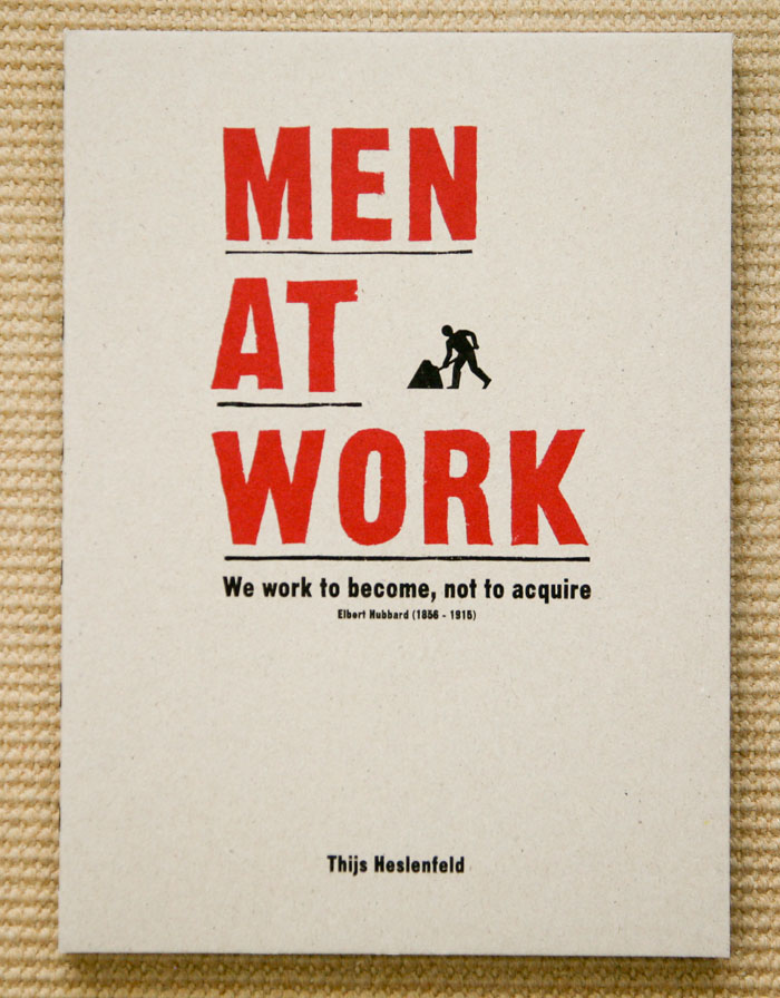 Tantalizingly, the answer to his question is not directly provided by Heslenfeld, but rather broadly hinted at. What is evident is a series of portraits of men who appear to be at or about their work. The portraits are placed in context with an extended caption from a brief conversation he has with his subject.