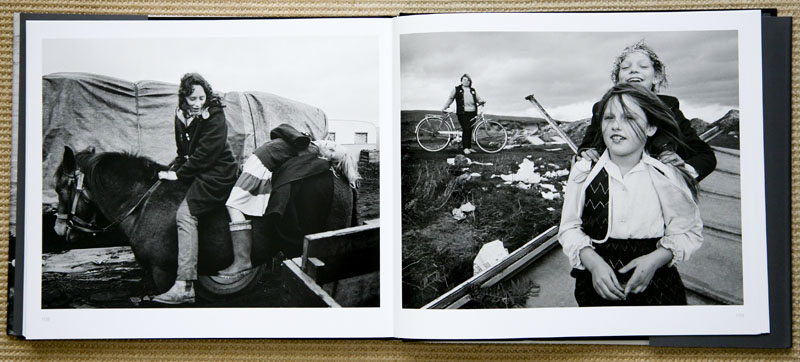Killip captures the work in progress that hints at the amount of labor that is involved with horse-drawn and manual operated carts, difficult work amidst bleak and desolate living conditions. Similar to farmers these individuals not only perform their necessary wage earning work it also includes the necessary maintenance of the equipment, homes, vehicles and animals. He captures the children who appear to be making the most of the current conditions; smiling and performing for the photographer’s lens and even so, reveal something about themselves in the process.
