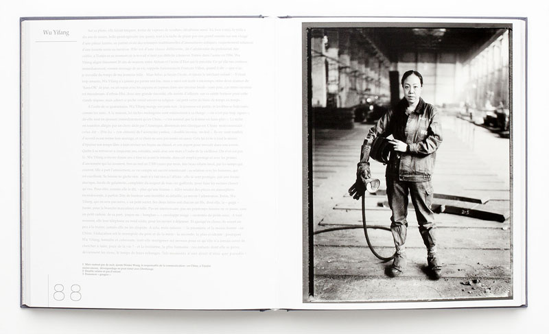 As an object, this book is a pleasure to hold and read, from the linen covered hardbound book with the tipped-in front cover image with a matching linen slipcase cover, to some of the heaviest pages that I have held in some time. There is no bleed through or ghosting of the images from opposites sides of these pages. The text is in French, Chinese and English, with the interview essays of the subjects by Eric Meyer.