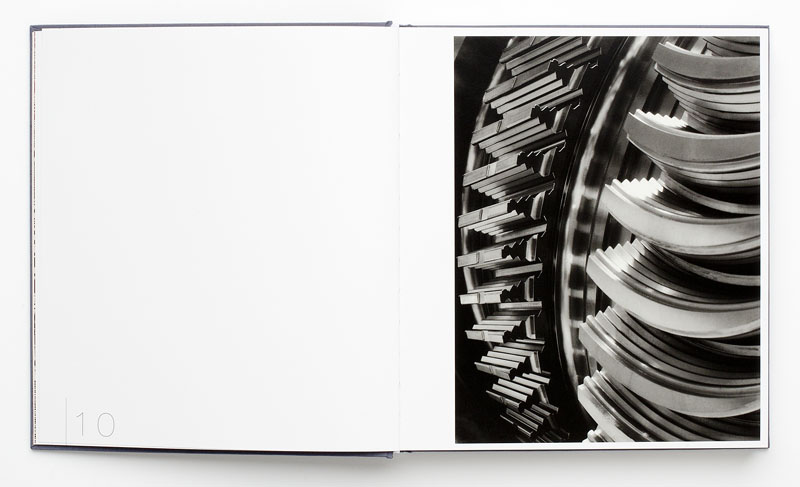 These industrial portraits are interwoven with close-up details of the industrial components that are the by-product of the work performed by the subjects. The machine parts photographs are tightly framed and are abstract in their lines and masses of grays.