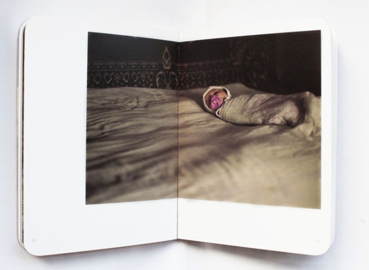 After some additional consideration, I decided to add yet another layer to the photobook exhibition with a working assignment for the photographers and their respective books. I requested the exhibition photographers to re-photograph a double-page spread of the book’s interior, providing a minimum of direction. Only that they should choose a double page spread which they think captures the essence of their book. The results have been humorous, provocative and revealing.