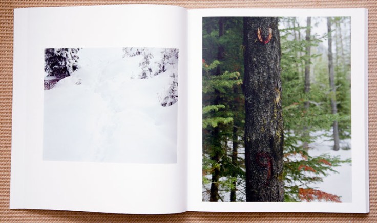 Thru Jude’s lens, we follow the trapper working his trap lines, amongst a mash up of vignettes of the surrounding terrain and wilderness that anchor the external context of this individual. Threaded through the book are photographs that appear unlike the domain of this individual, building an uneasy sense of tension.