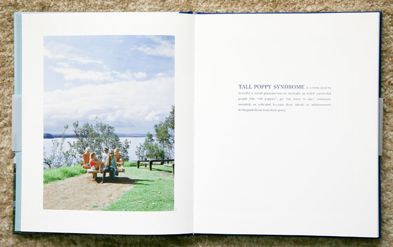 The photobook Tall Poppy Syndrome by Amy Stein and Stacy Arezou Mehrfar utilizes metaphors to narrate their joint investigation of a subtle cultural trait in Australia. In Australia, as in some of the other regions of British cultural influence, the Tall Poppy Syndrome is a term to describe a social phenomenon in which successful people (the “tall poppies”) get “cut down to size”. A collaborative and indirect story about social conformity and maybe what it might feel like to not to fit-in or conform.