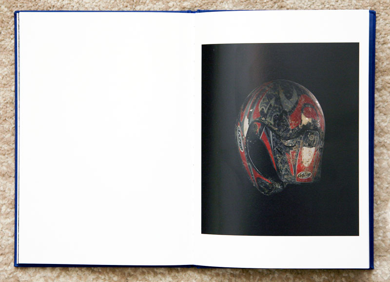 What I find jarring is the last section of the book that is sequenced with double page and full bleed landscape photographs interceded with a series of motorcycle helmets studies in various orientations. Regretfully for me, this conceptual project progresses into a little too much complexity, and while the story by Julien Perez seems to hold together with a somewhat similar narrative flow, Hosteing’s photographic sequence is not entirely as elegant.