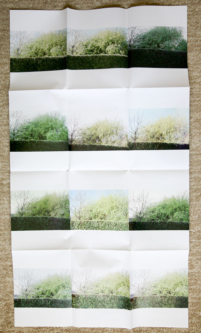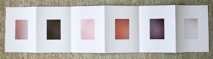Nevertheless, this publication is a collection of bits that are exhibited as single projects; Sesame whole wheatbread, Black Paradise, Non-chronological yellow tree and Shades of Green, etc. As a collection, it is a complex read as this contains a booklet, a reversible poster, a concertina folding and separate individual photographs, as well as being layered; as these are interrelated and intertwined around her general theme of the act of looking.