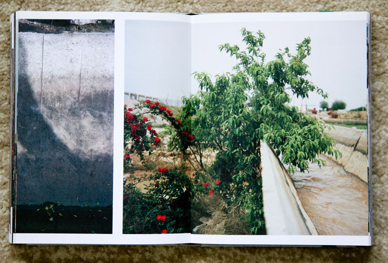 The very first thing that strikes the reader upon seeing Two Rivers are the short covers, they do not extend out to overlap the interior book block. There were specific metaphors in mind for this cover design; the two rivers she investigates due to man’s (government) interventions no longer reach the two lakes that these rivers have historically fed. In leaving the interior block exposed, she has also created a tension for the reader, as the block of photographs are no longer safely protected by the exterior covers. Thus metaphorically her subjects are also left exposed and are placed at risk, a subtle criticism of the governmental policies affecting those who had depended on the rivers to survive in this region.
