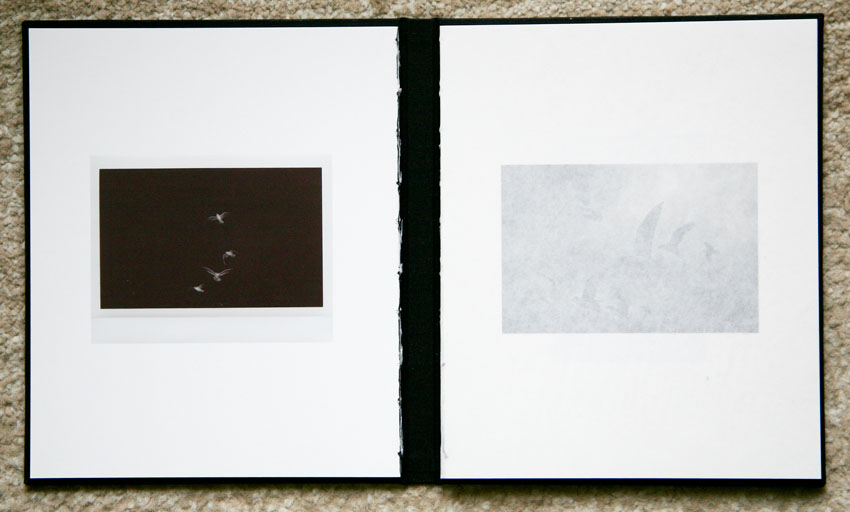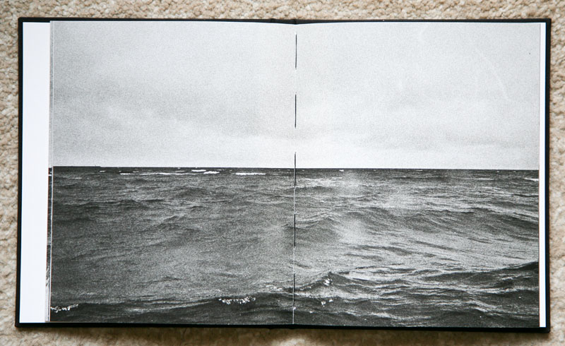Very simply, his is a story in two parts. First is a past event, a visit to the Baltic Sea with a lover and a relationship lost. That in turn has led to the circumstances for the second situation, a revisit to the same sea as a personal therapeutic journey. And correspondingly, the book has two distinct parts, incorporating the two bodies of work in two unique page blocks. Each page block is attached via the end papers to a book cover panel.