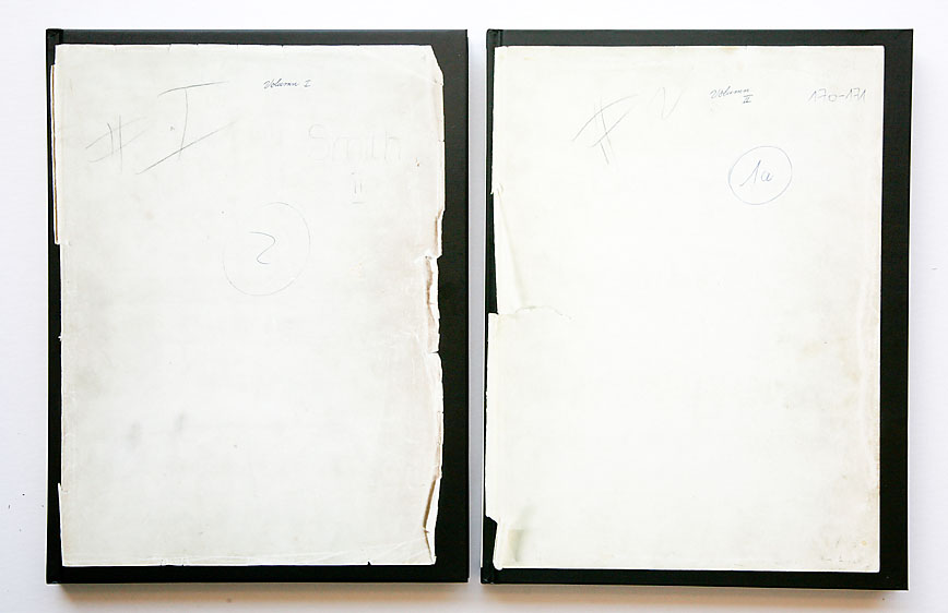There is an absence of text, captions and pagination within the two volume maquette as these details would probably have been included at the final publication stage of the ensuing photobook. What the reader will find included are Smith’s hand written notes that accompany specific photographs, as an example a note to check on the cropping of a specific image. Essentially a maquette was not created to be a permanent record, but temporal to communicate the essence of a book concept, as a visual aid to the publisher. Nevertheless, Smith’s maquette has become a semi-permanent record of one photographer’s endeavors, now taking a life of its own and being shared with a much wider audience.