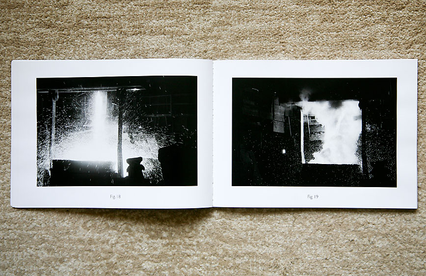 It can be relatively easy to capture the façade of a working industrial site, although the exterior usually only hints at the complex activities occurring within. To facilitate this project, Smith segmented his book into four basic chapters aligned with the flow of steel, following it from the furnace to final products; Melt, Foundry, Forge, and Machine.