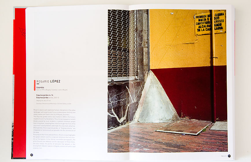 The hard cover book has an exposed taped binding (Swiss Binding) thus the large text block is hanging by the endpapers on the back cover, which seems pretty substantial, yet makes for an interesting photobook design. Another text was provided by Luis Camnitzer, and there is an illustrated Biography section for each photographer that attempts to provide additional information, a selected Bibliography on Latin American Art and a Timeline of Latin American Histories to provide additional context. The engaging graphic design was by Olivier Andreotti (Paris) and the book was beautifully printed by Artegrafica (Verona, Italy).