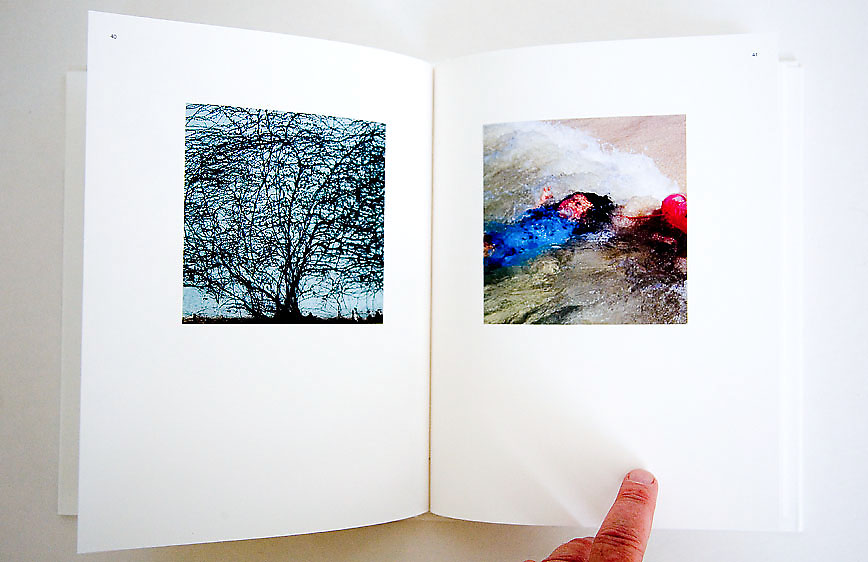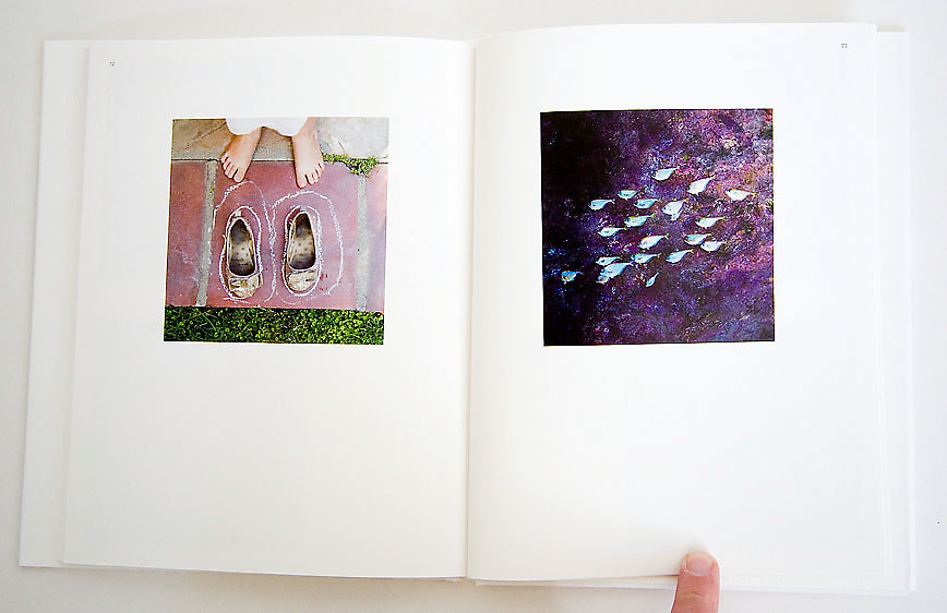 Watanabe is very familiar with a square image that results from his medium format camera that the square being an inherently a static framing as compared to a traditional 35mm format or 8 x 10” image. Even though his digital camera has the capability to create rectangular images Watanabe imposes the equal sided format that he is so comfortable with. After so many years working with a 6 x 6 vision he is able to introduce a delicate balance and tension within this structured format. The square images which are printed one per page seem to gain some dynamic energy due to the random placement within the page’s layout.