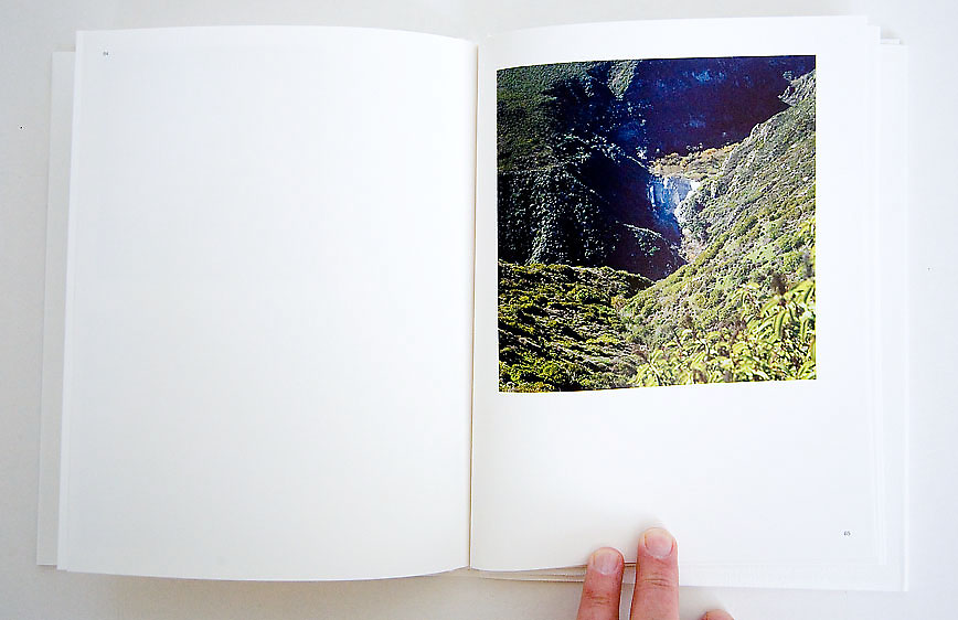 One aspect of this photobook that does bother me is that although this is a very beautifully printed object the binding does not allow a lay flat viewing for the reader as you will note the inclusion of my hand frequently in the book’s interior photographs, below. The flip side is that this is a stronger book binding technique.