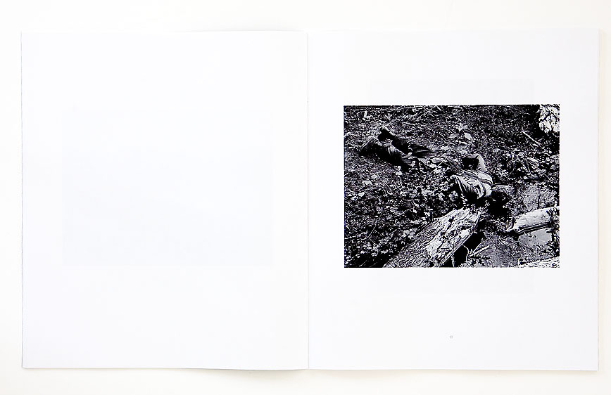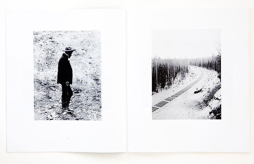 This artist book has a heavy cloth cover with staple binding (saddle stitch), black & white photographs that are offset printed with UV inks on uncoated paper, with a poem by Michael McGriff.