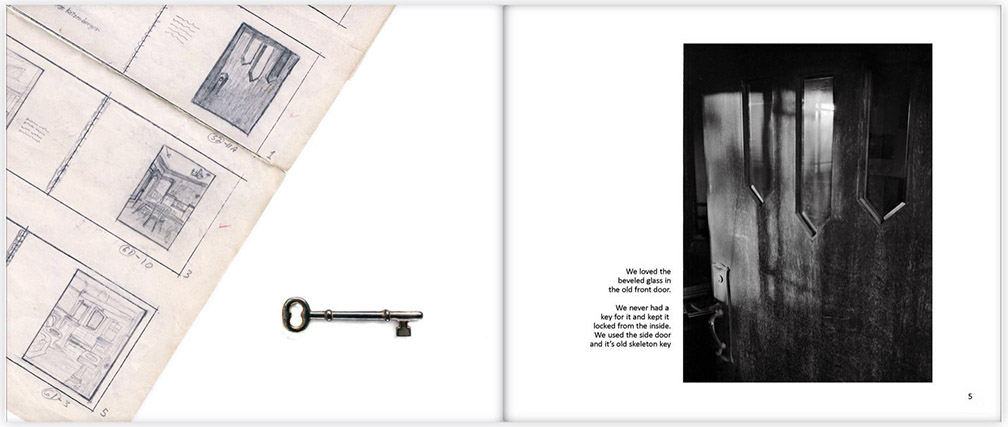 The old house that once stood at the address known as “605 East Chestnut” is the protagonist of this narrative. Katzenberger takes an anthropomorphic view: he sets up the story by introducing us to the characteristics and projected emotions attributed to various parts and features of the place: the porch, various rooms and old TV programs seen, the neglected backyard, the messed up wiring, each of which is given the status of a unique memory. The images and the accompanying captions and comments convey a feeling of deep attachment to a place that once was home.