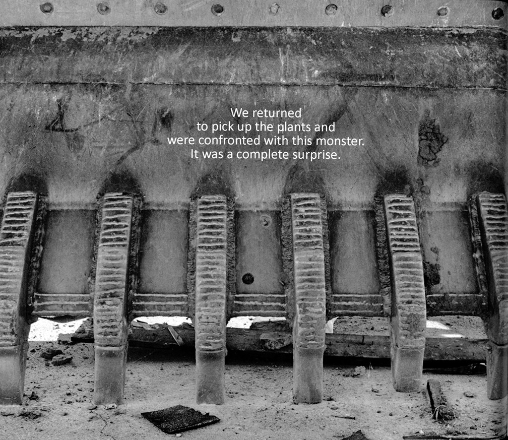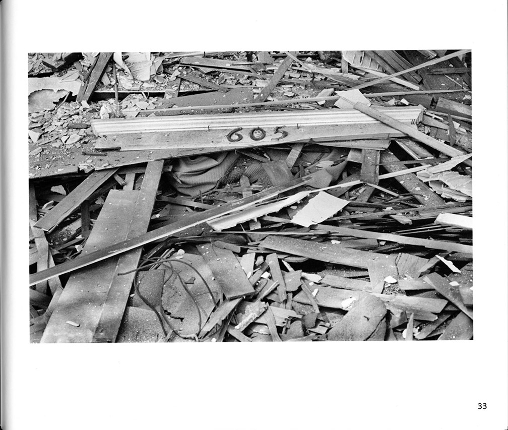 Another feature that makes this photobook special is the tension Katzenberger builds up from beginning to end. The iffy but lovable structure and its devoted residents are given notice by the owner, the mood gets dark, and the confrontation with a giant bulldozer seems to be the end. But the final conclusion is reached when even the dog has given up on the location (see the last photograph below). The images and layout, as well as the pacing, are excellent.
