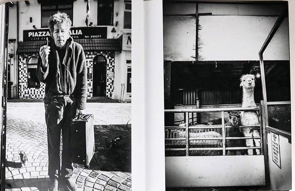 On the other hand, this book is too big, too thick, too heavy. The reader is compelled by the weight alone to show respect for the book even before it is opened. Some really strong images of the author suffocate in the surrounding mass of images. Visual metaphors and symbols are seemingly arbitrarily juxtaposed with the people of Blackpool: lambs, pigeons, crosses, saints, rabbits, ostrich babies. Ostrich babies?