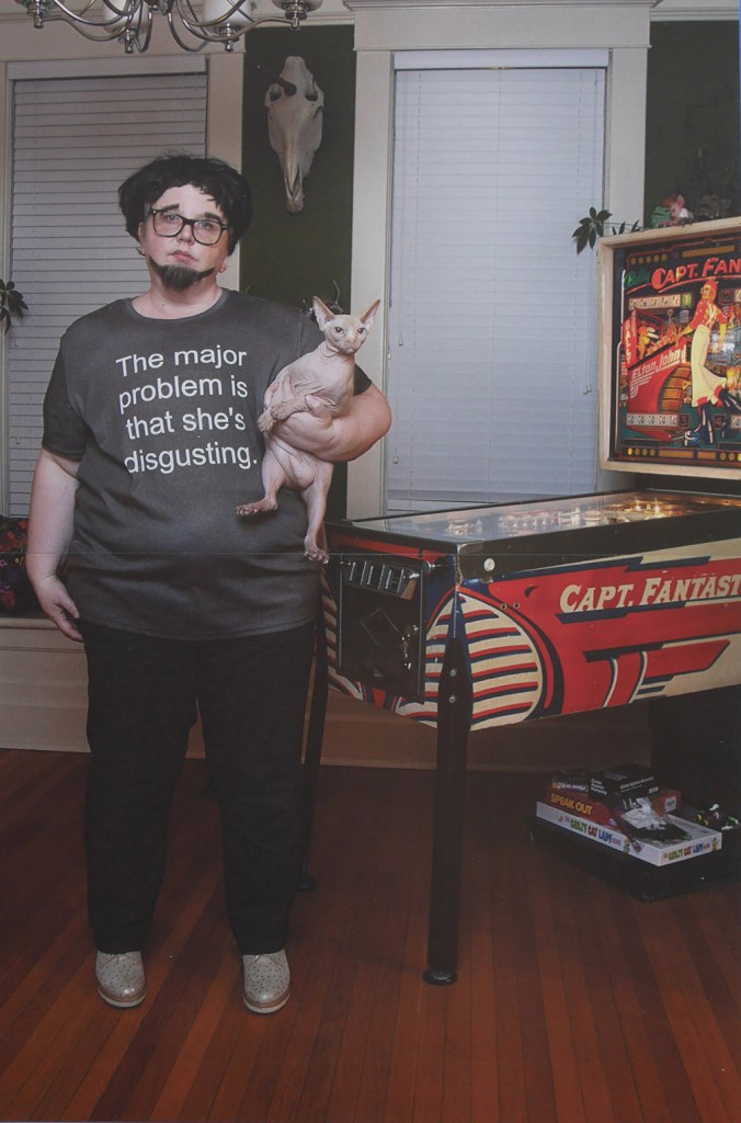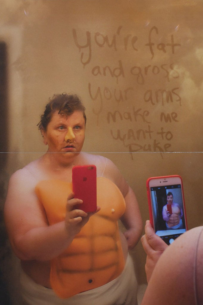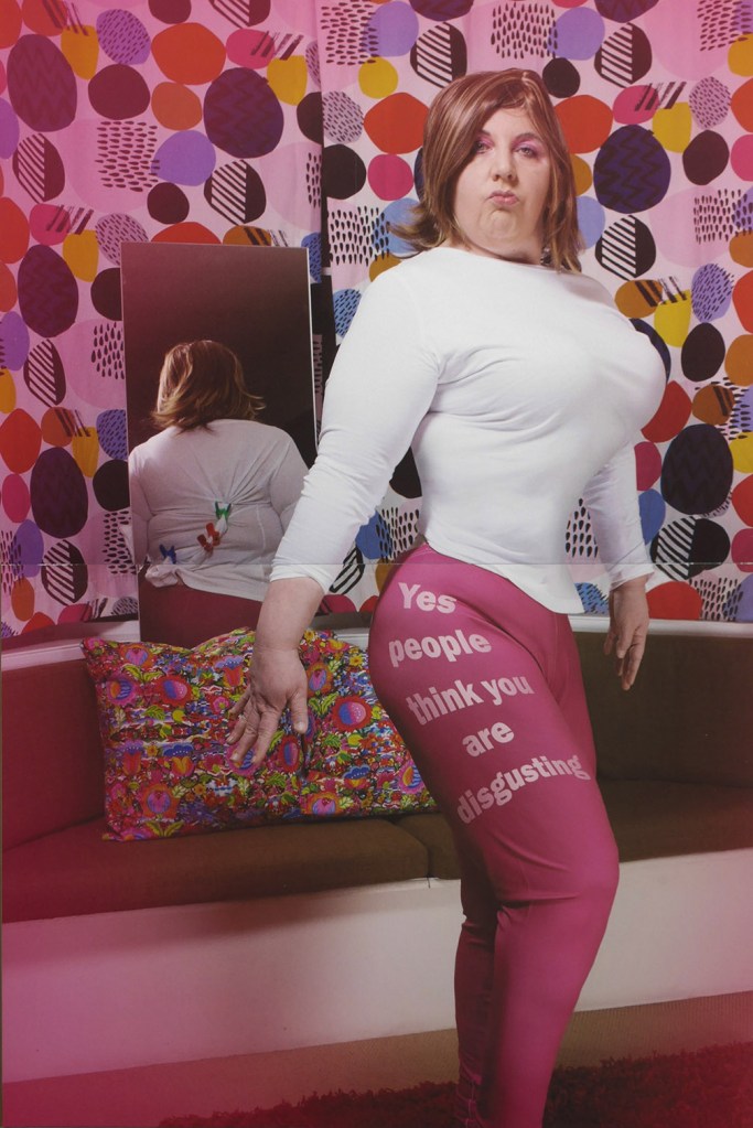 Haley Morris-Cafiero experienced cyber-bullying regarding a previous project that showed others looking at her on the street in uncomplimentary ways. Many hundreds hurled verbal insults at her, and phrased these comments in rather crude and callous terms. Well, her response was to seek out the bullies and their slogans on the internet, study each bully’s own appearance, and then create responses in photographing herself in a kind of perpetrator cosplay, creating roles in which she mimics and mocks both their appearance and insults, and treating them to a re-creation of their bully personae, with all their own features and nasty epithets included – even quoting their faulty grammar and orthography verbatim.