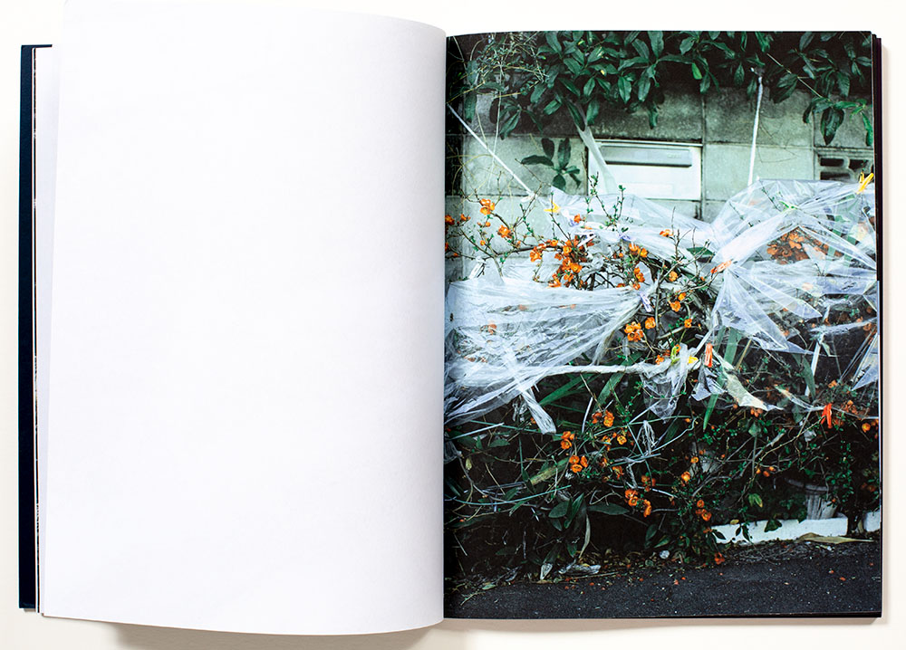 Shortly after returning to white paper, a design switch changes the location of the images and smaller papers. Now the images are printed on the left side of the spread, a subtle nod to the design of Japanese books and how these books are read from right to left, a reversal of the Western convention. These design change-ups reflect the implications of a photobook-kami, in that a spirit may have been watching over Rusznica during the development of this body of work and had a desire to help guide a Western train of thought. The subtlety of the book’s design verge on brilliant.