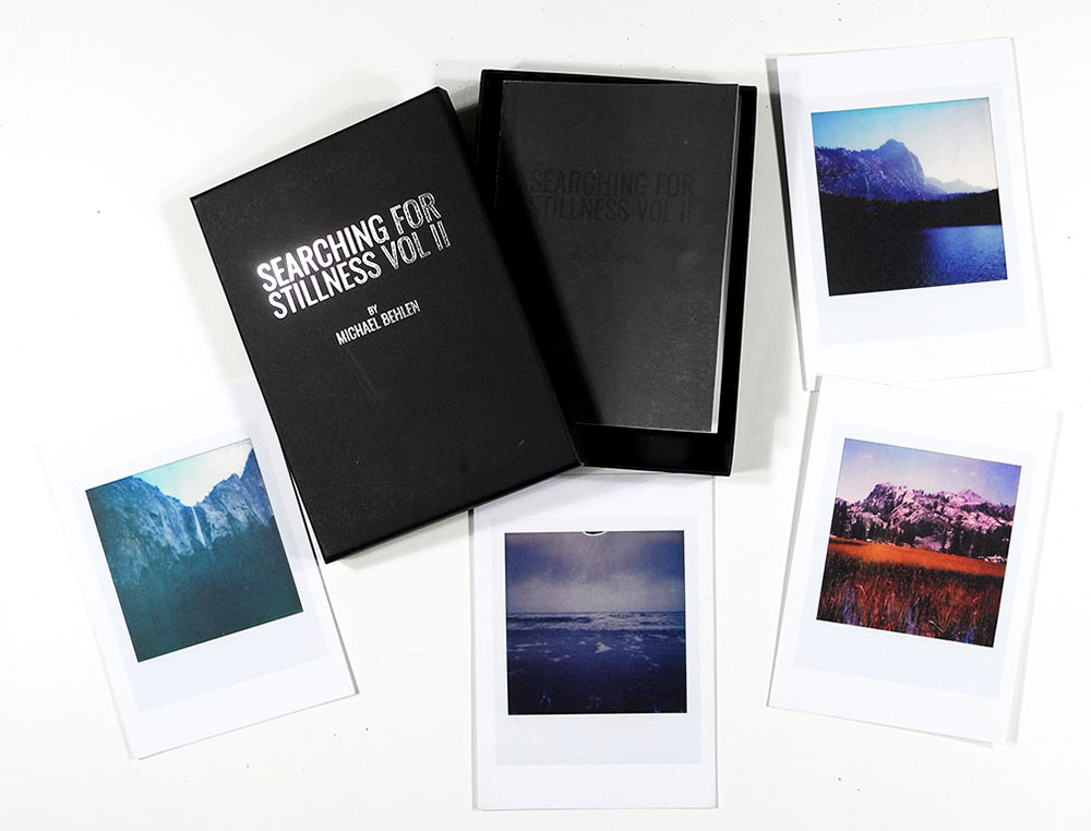 Searching for Stillness Vol II is Michael Behlen’s 2019 follow-up to his 2013 Searching for Stillness Vol I. Volume II is a delightful object which challenges the notion of what might be meant by photobook. In fact, it might be better described as a photobox.