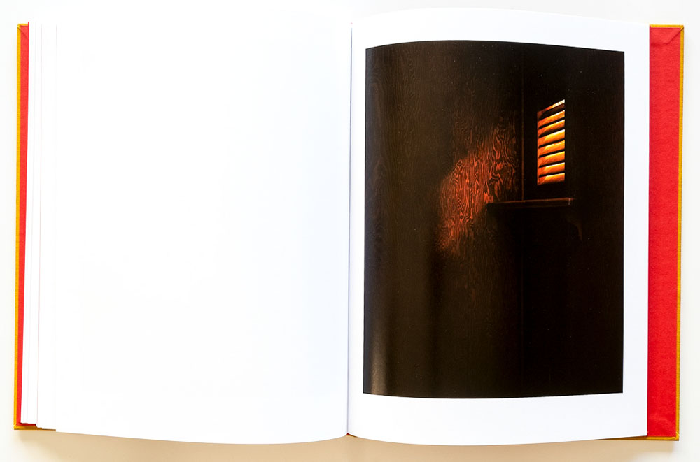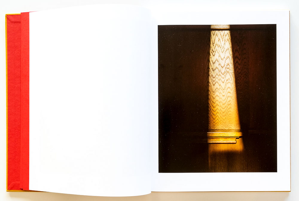Mandle shot with a large-format camera and available light. The resulting long-exposure images are rich in depth and detail, revealing traces of the countless souls who have sought absolution in these spaces. The understated design of the book underlines the quiet, contemplative nature of the experience. Faded red pages, suggesting sacred vestments or the worn velvet cushions seen in some of the images, introduce the book and serve as dividers throughout. Essays describing the penitent experience by Kirstin Valdez Quade and Dorothy Day are also presented on these red pages, in print so faint it’s as if spoken in a whisper.