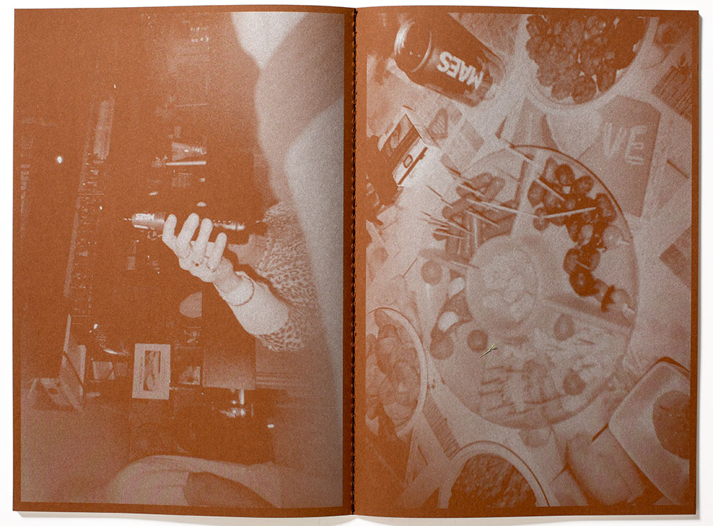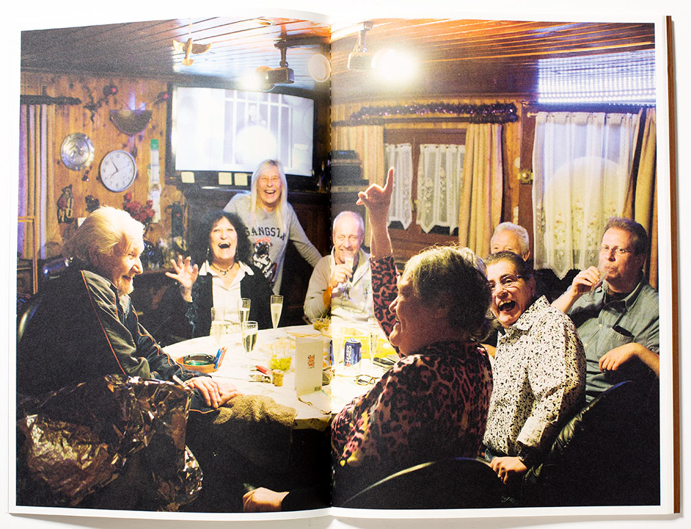 The resulting narrative that Katherine Longly creates draws upon her past artist book practice of mashing together her photographs with those of the archive of her subjects. Her subjects participate in the resulting exchange by providing background images while photographing their current daily experience, such as their “wacky parties”. Longly intertwines these two viewpoints, extending the story-line boundaries while creating visually complex layers within this documentary.